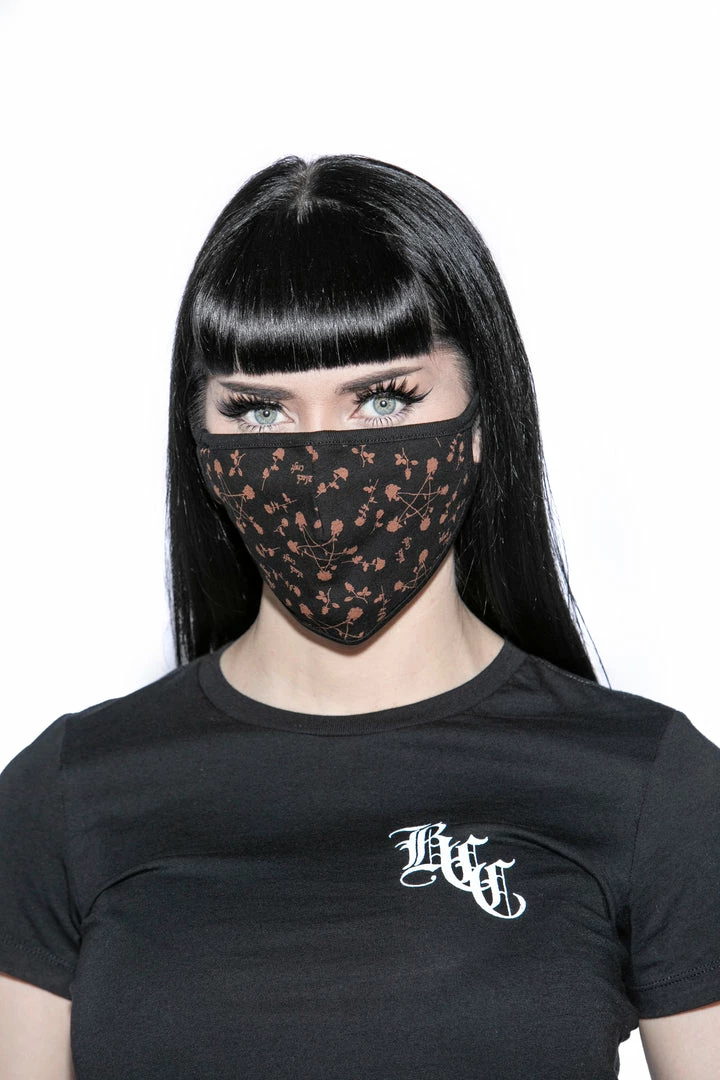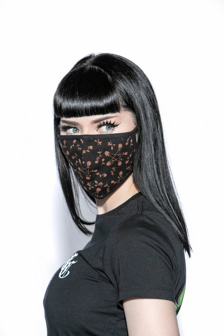Face Mask with stretchy earloops for a close fit and Pentagram Rose design.