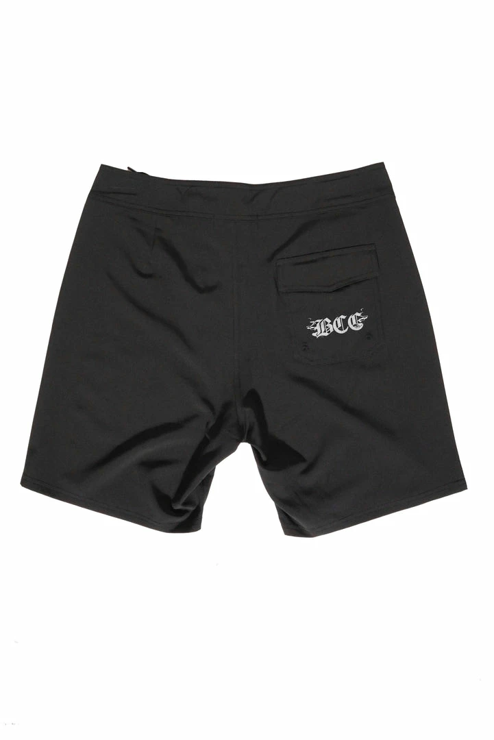 7″ inseam stretch men’s board short with Reaper Casket print on left leg. Lace-up front with Blackcraft repeating logo print on the laces. A back flap pocket features the Believe in Yourself logo.