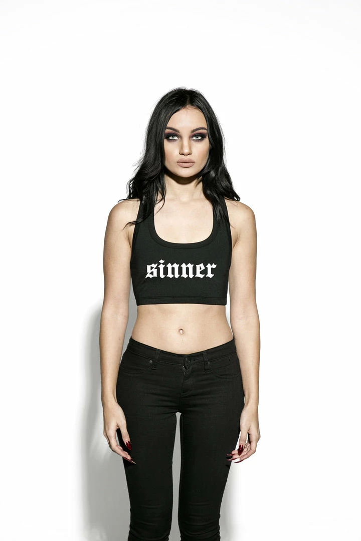 Form-fitted silhouette, racerback, and elastic bottom opening.