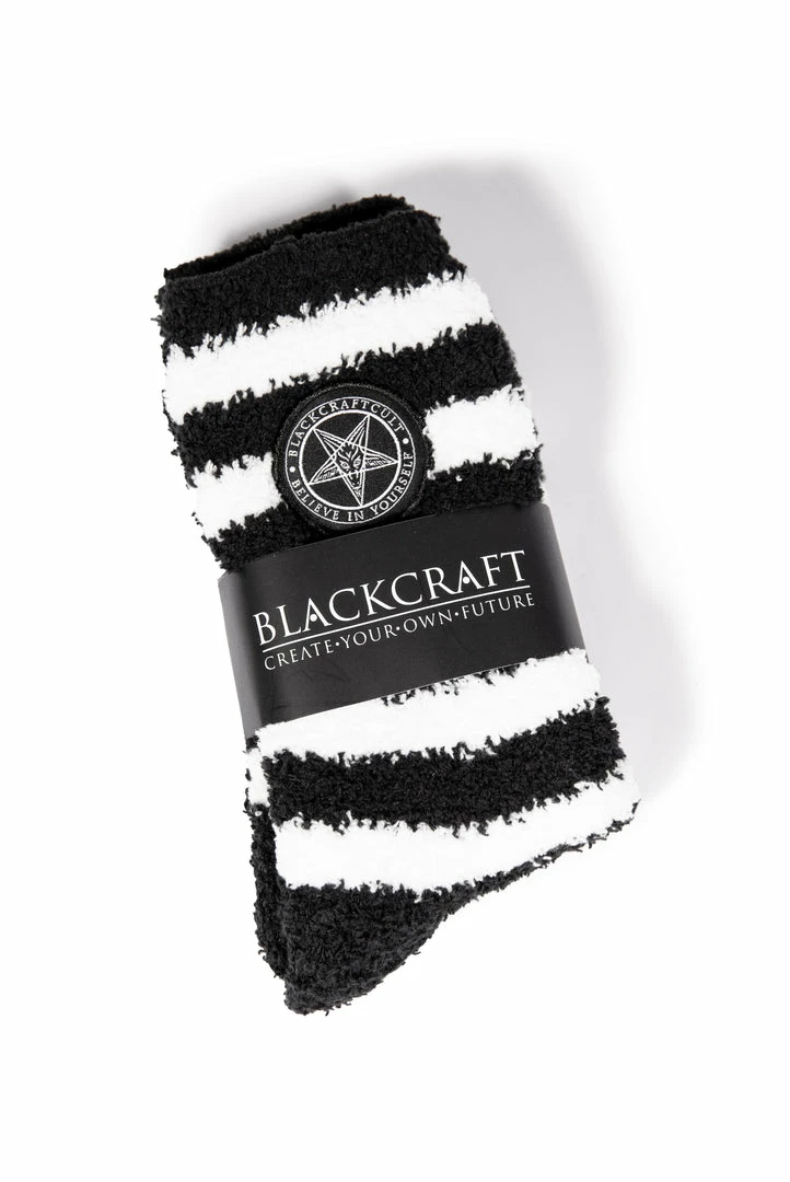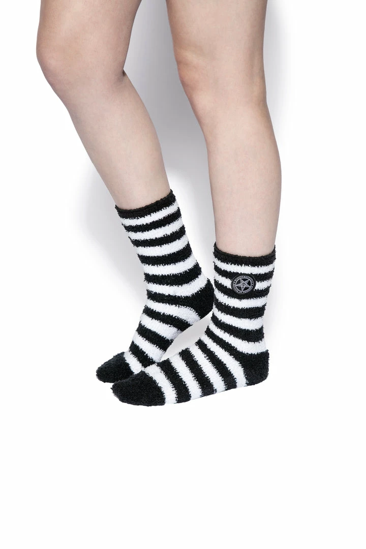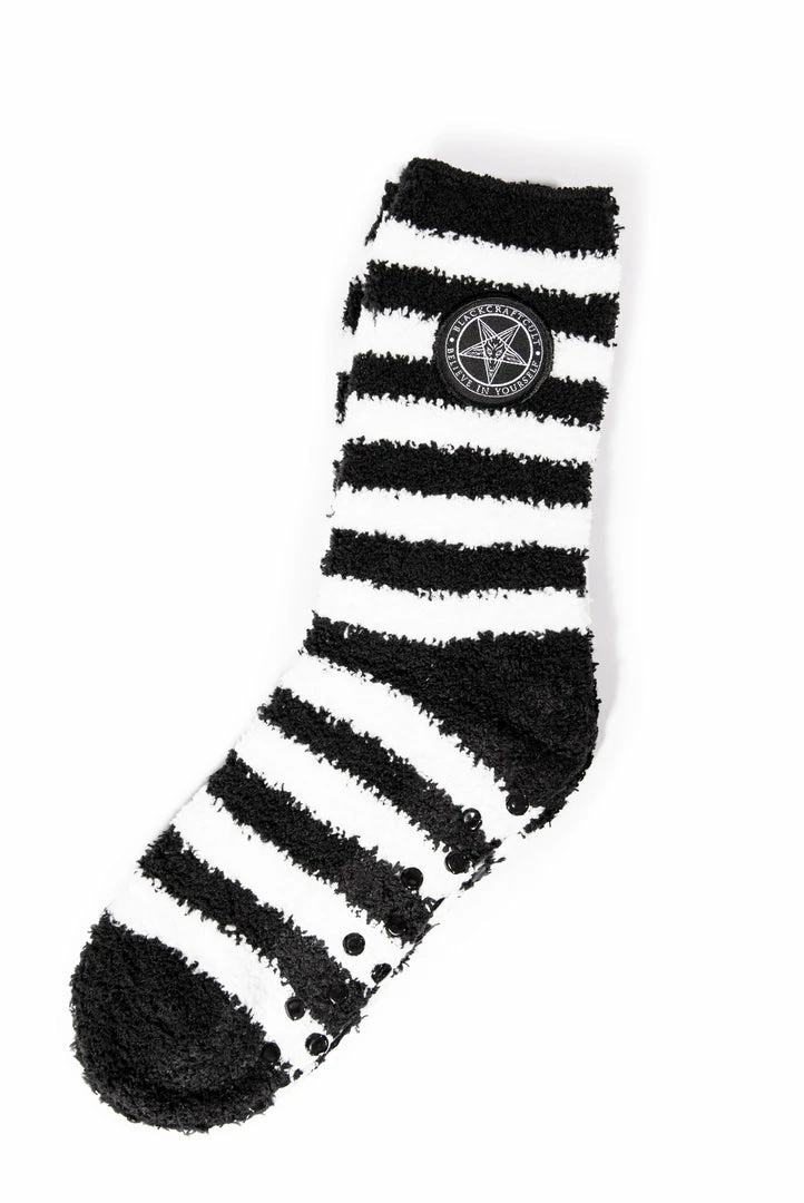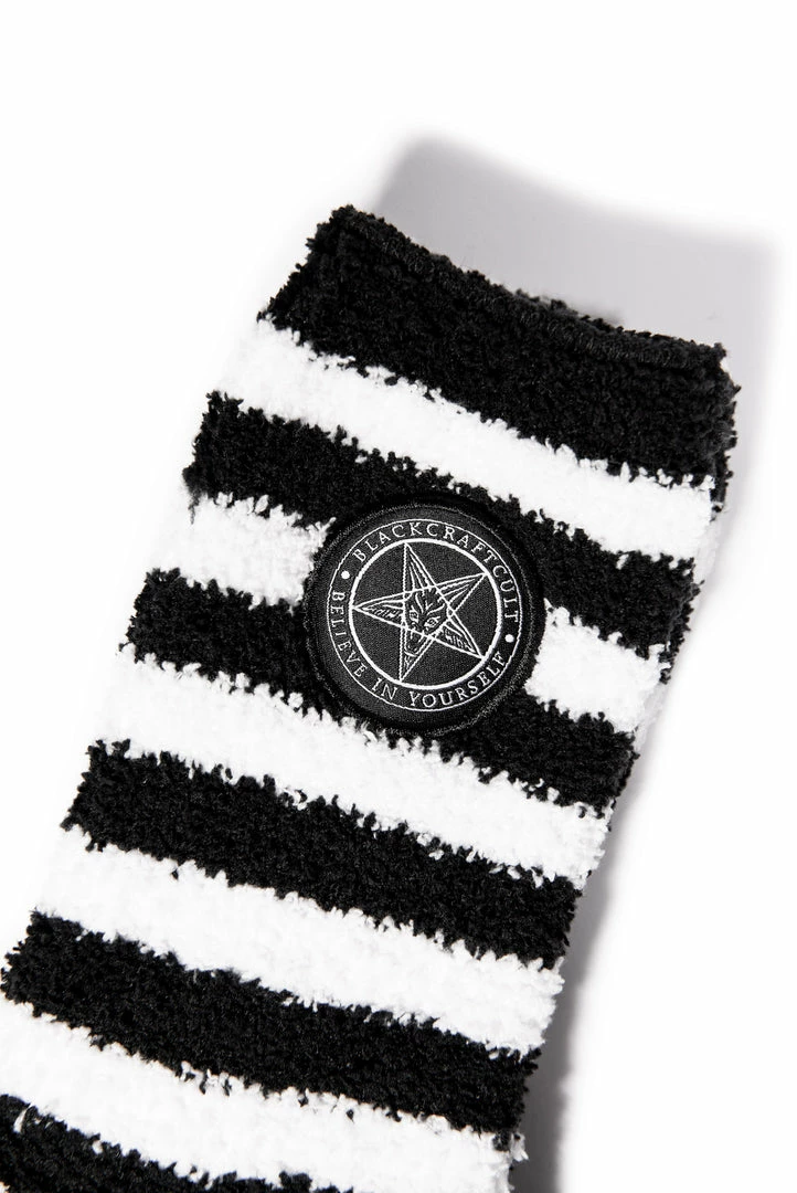 Long cozy socks with silicone grips on the soles and Believe in Yourself patch.
