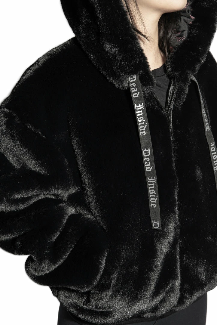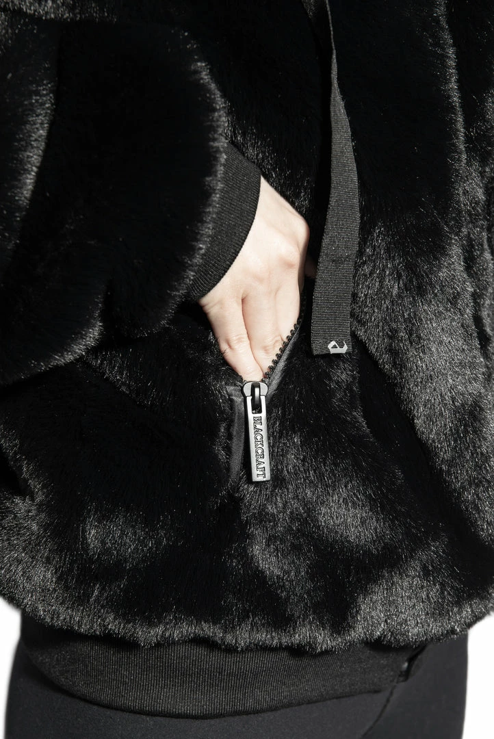 Cozy bear vibes with this oversized zip up jacket with hood. Features custom drawstrings and interior lining. Includes exterior zip pockets and faux fur so soft that you can’t keep your hands off it!