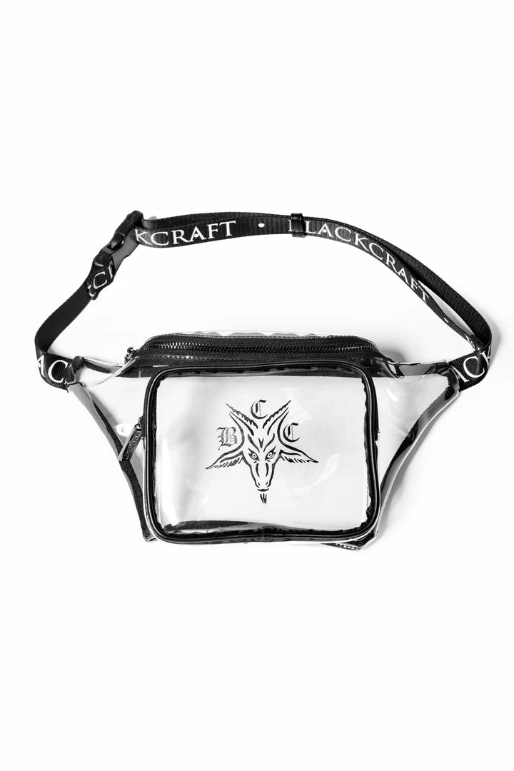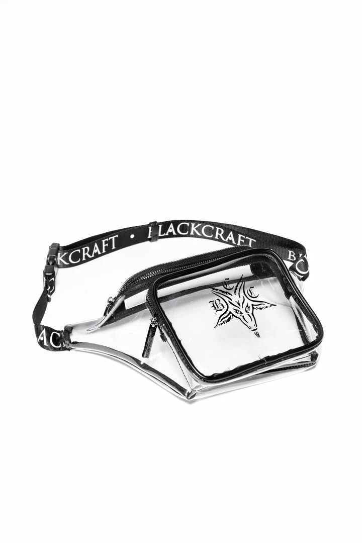 Premium heavy PVC clear material fanny pack with faux leather trim. Adjustable Blackcraft logo webbing straps with gunmetal finish Blackcraft zippers.