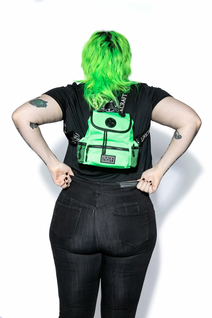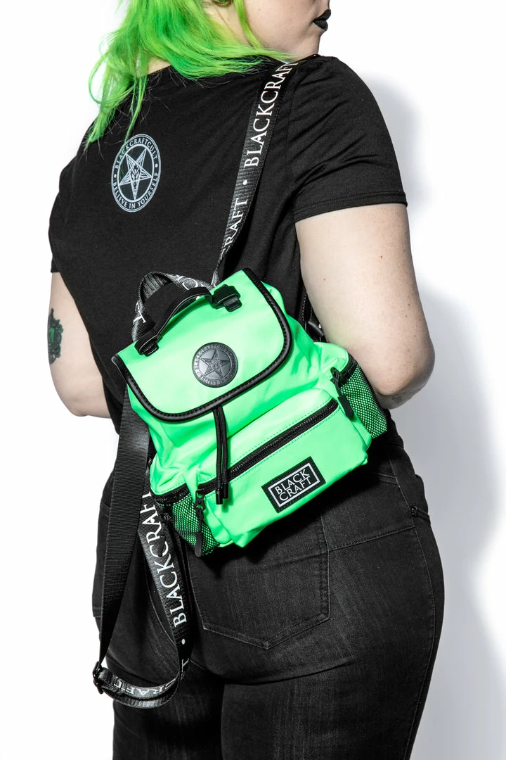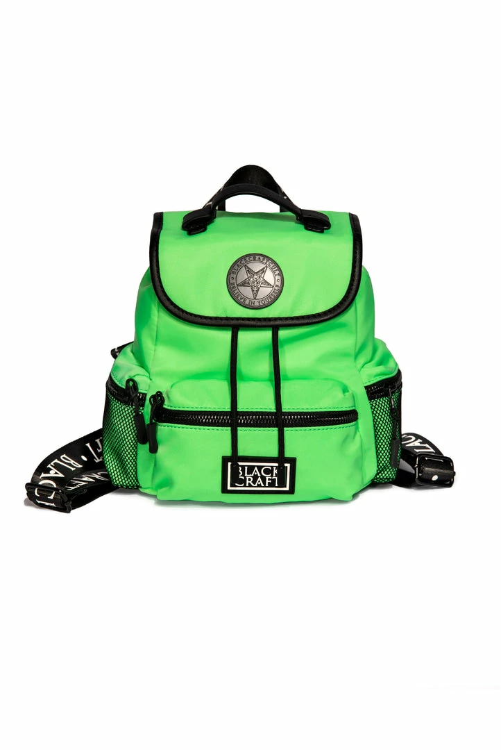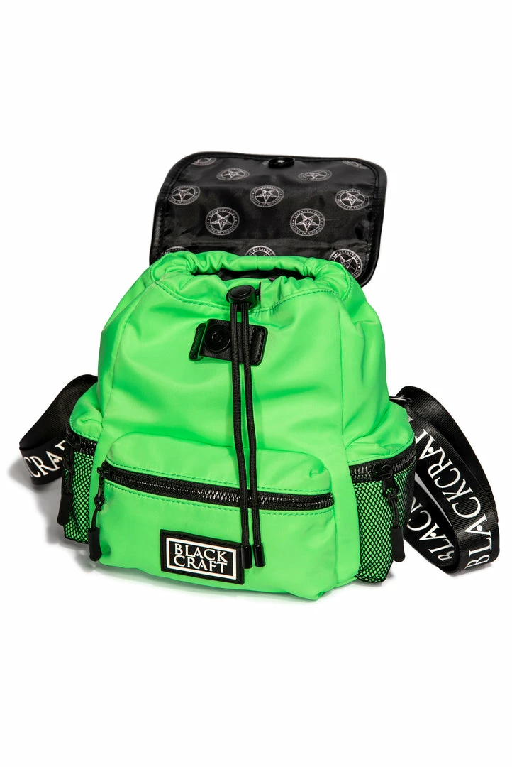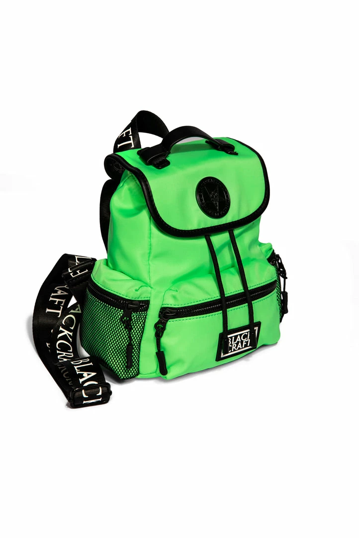 Nylon mini backpack with drawstring closure. Adjustable Blackcraft straps and faux leather details. Includes 3 small outer pockets with zip closure and 3 interior pockets with 1 zip closure. Features custom interior lining and Blackcraft logo hardware.