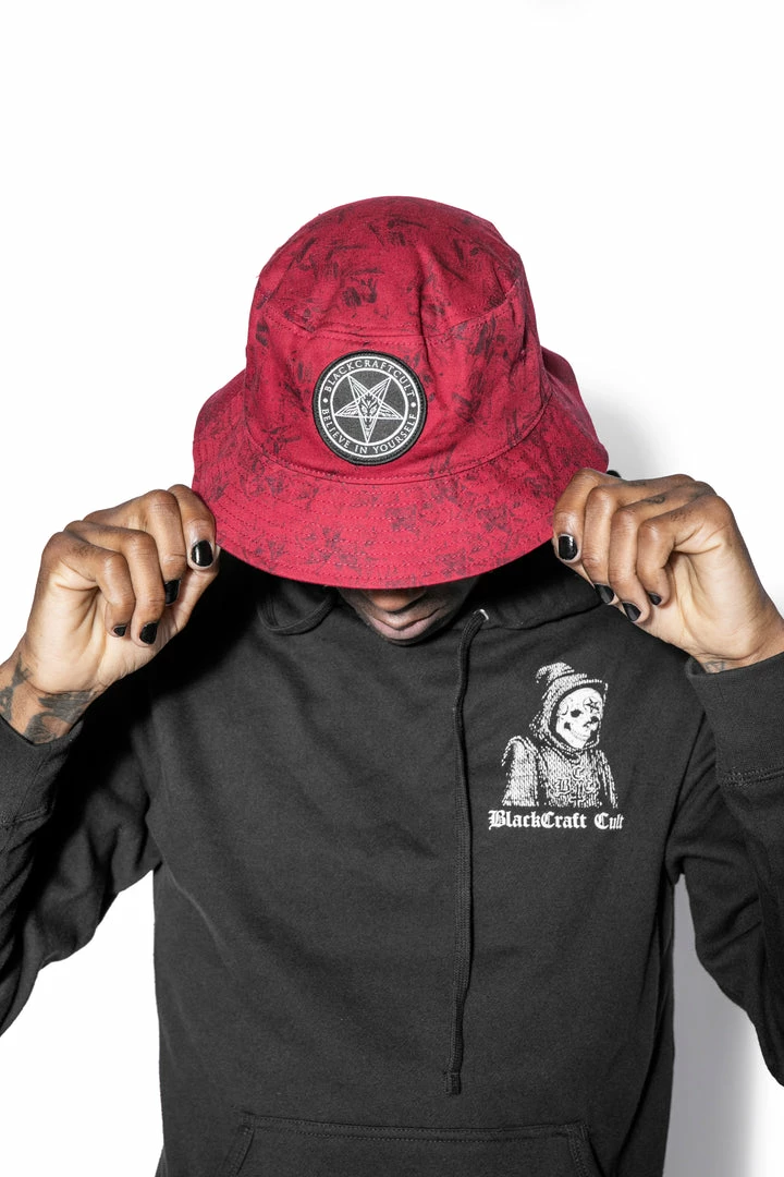 Bucket hat with Believe in Yourself patch sewn on the front.